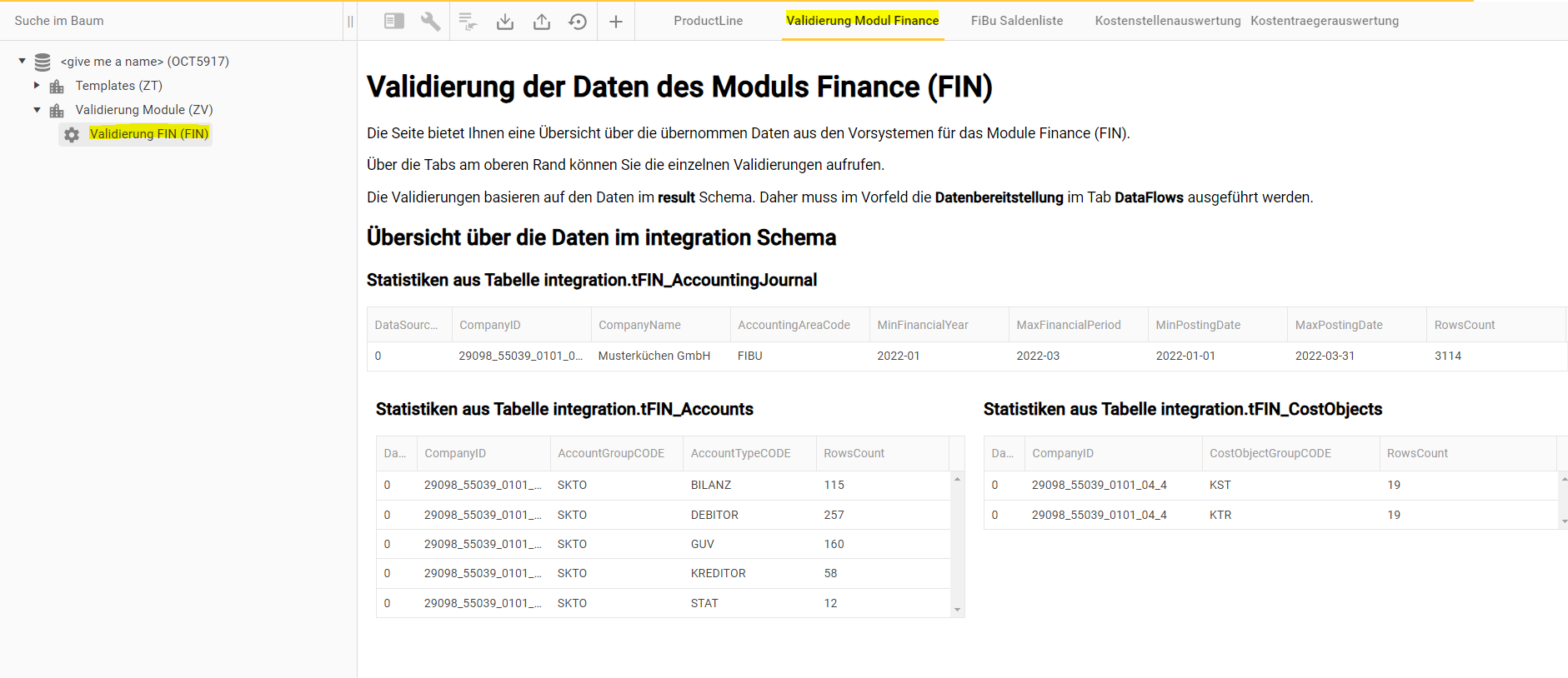 Es erfolgt ein Transfer der Daten von den integrations-Tabellen "tDATEV" in unsere Verarbeitungstabellen mit dem Präfix “integration.tFIN”.