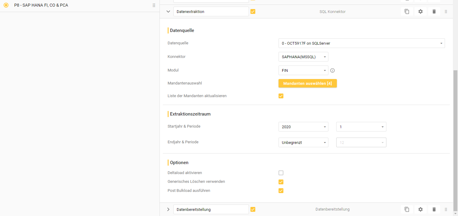 Bei diesem Artikel liegt der Fokus auf der Einrichtung & Verwendung des SAP-HANA-Konnektors. Dabei ist zu beachten, dass es für SAP einen separaten Konnektor und Ablauf gibt. Es handelt sich inhaltlich um eine Pipeline für den Export von SAP-Daten aus den Modulen FI, CO & PCA.