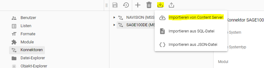 Den Bereich “Administration” und den Menüpunkt “Konnektoren” öffnen.