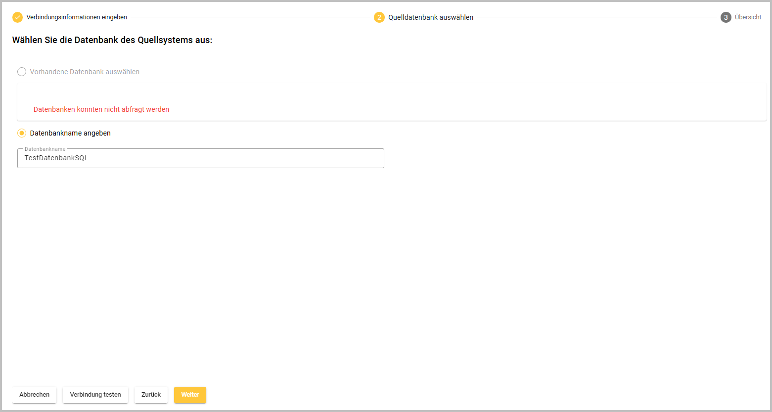 Quelldatenbank auswählen (Schritt 2)