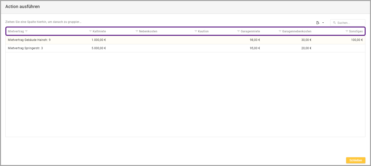 Ist im Drop-down-Menü ein Feldwert, z.B. Betrag, ausgewählt, kann nach Auswahl der entsprechenden Action im Dialog “Action ausführen” ein Wert, z.B. der Betrag, ausgewählt und in die Zelle übernommen werden, von der aus die Action gestartet wurde.