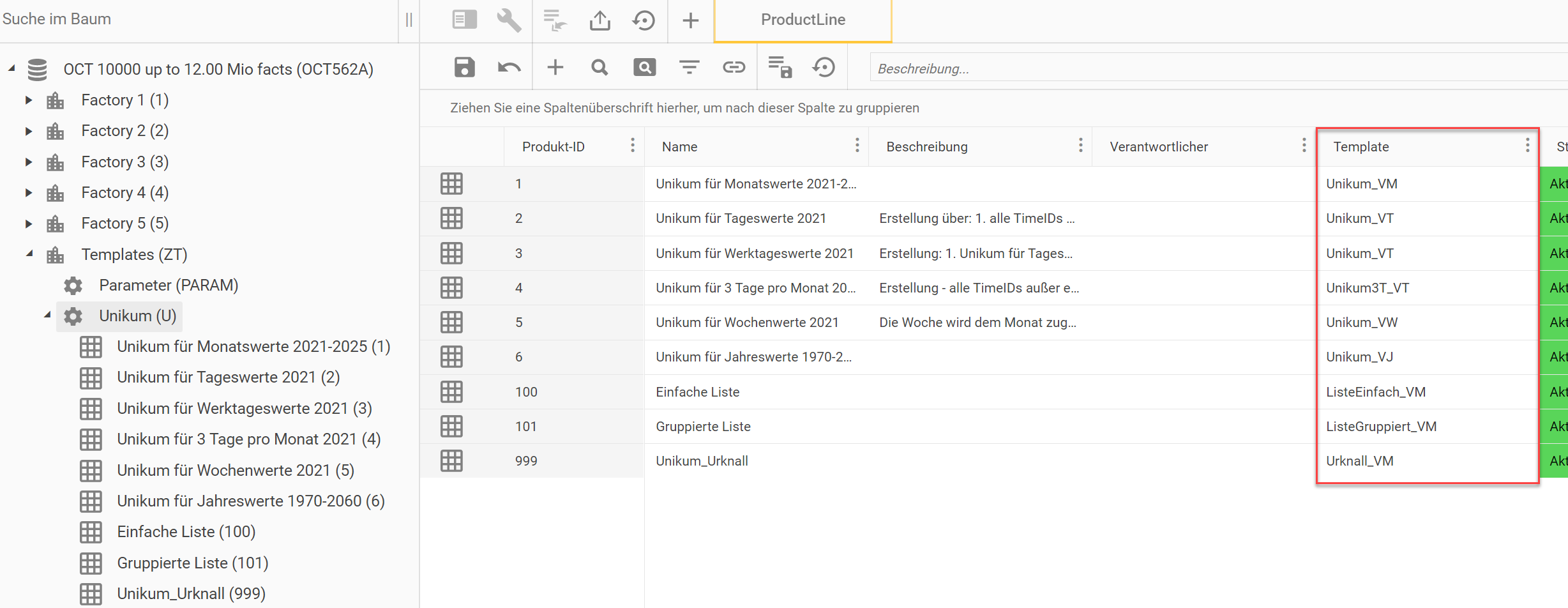 Sie können diese Bezeichnungen z.B. in der Spalte “Template” im (4.4.2. "ProductLine"-Tab | 2.-Produkttabelle) finden und auch ändern: