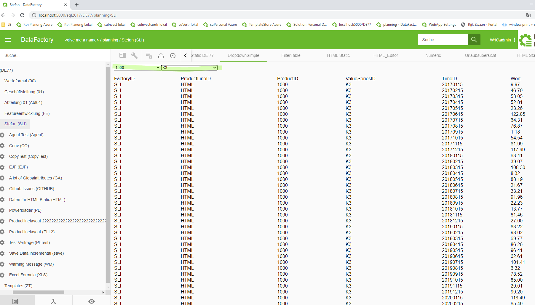 Innerhalb des Bereiches Modulverwaltung, in der Registerkarte “Planungslösungen” (siehe Kapitel 4.4.), kann das “Unikum für Deutschland” heruntergeladen werden. Die Fabrikebene des Unikums, die Fabrik “Templates (ZT)”, enthält verschiedene Beispieltabs: