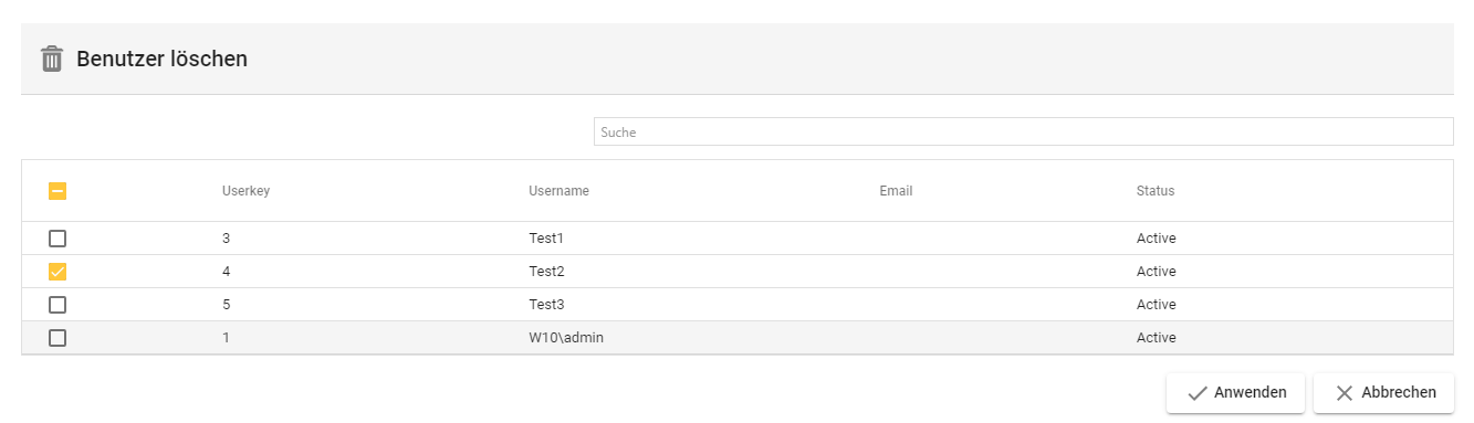 1.2. Tabelle des Menüpunkts “Benutzer”