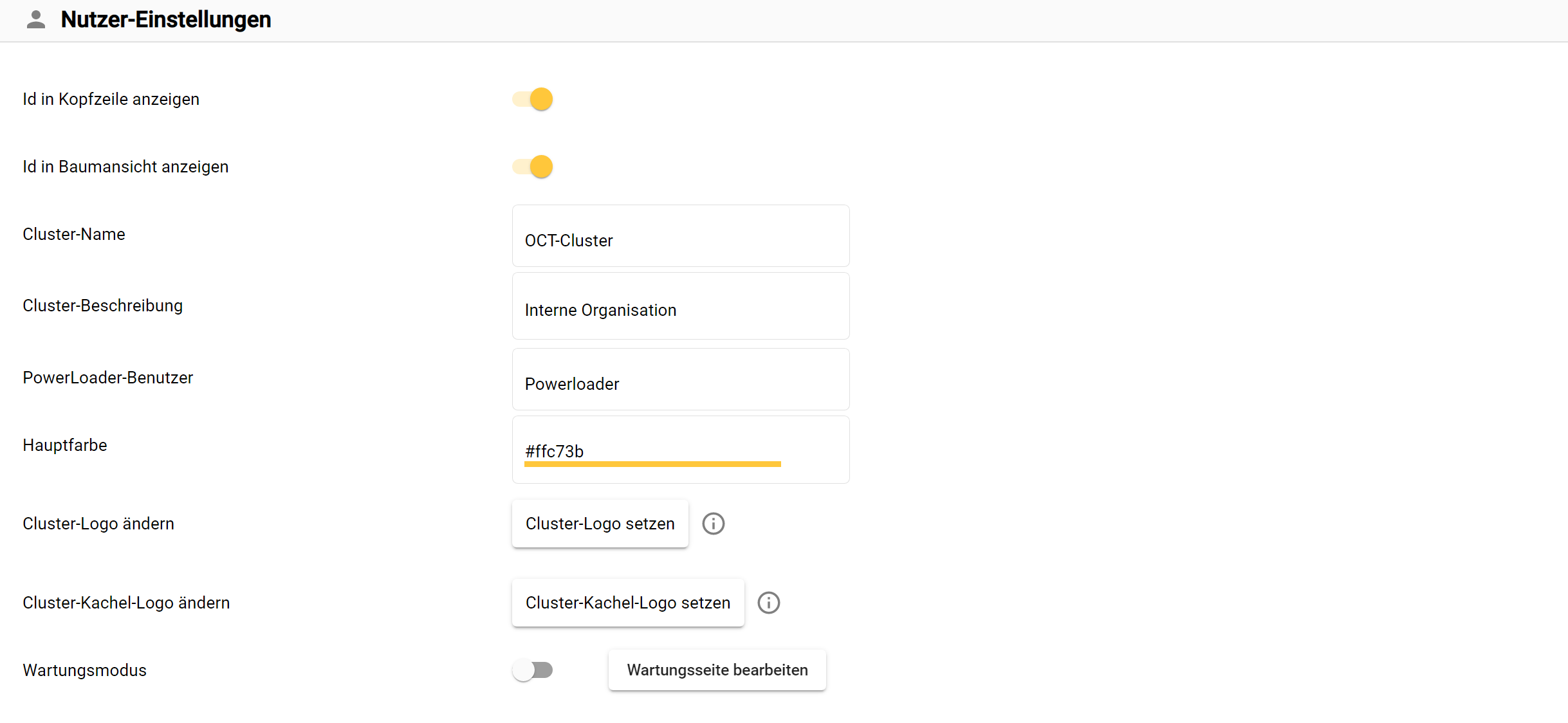 Legt die CI-Farbe (CI = Corporate Identity) für den gesamten Cluster fest.