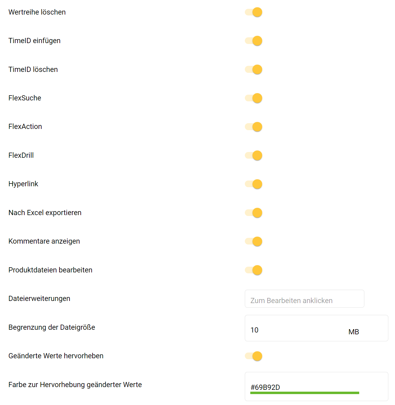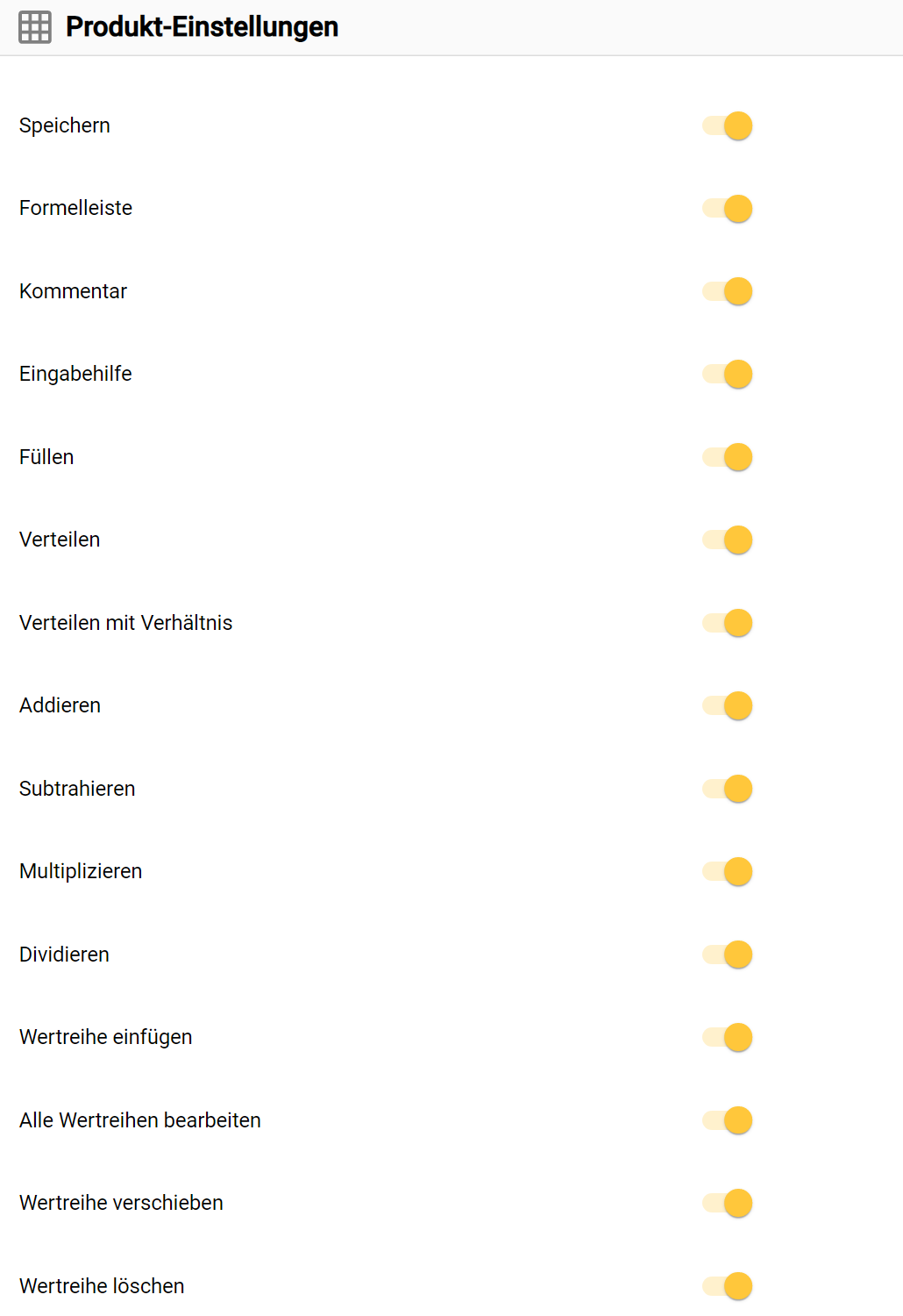 Diese Einstellungen beziehen sich ausschließlich auf Funktionen in der Hauptmenüzeile & in Untermenüs der Produktdatentabelle und des Kontextmenüs eines Produktes (siehe Kapitel 4.5.1. Kontextmenü des Produkts & 4.5.2. Produktdatentabelle (PDT)).