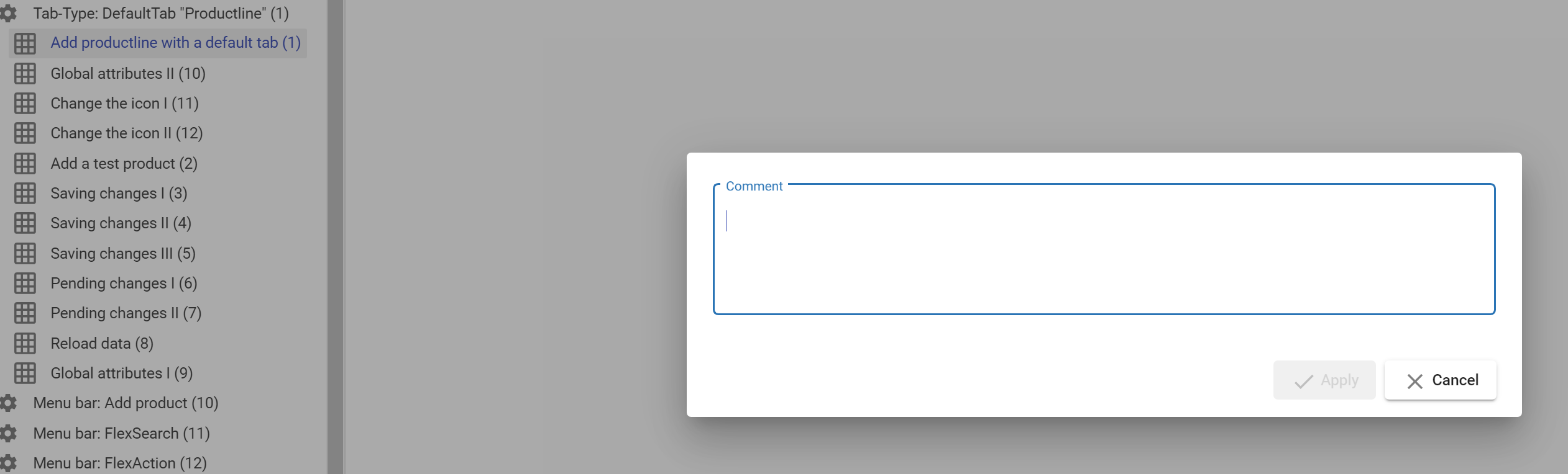 Die Auswahl “1” öffnet, für den betroffenen Nutzer, immer ein Kommentarfeld, wenn dieser eine Änderung in einem beliebigen Produkt des Clusters vornimmt und versucht diese zu speichern. Lehnt der Nutzer die Eingabe ab, so werden die Änderungen nicht gespeichert.