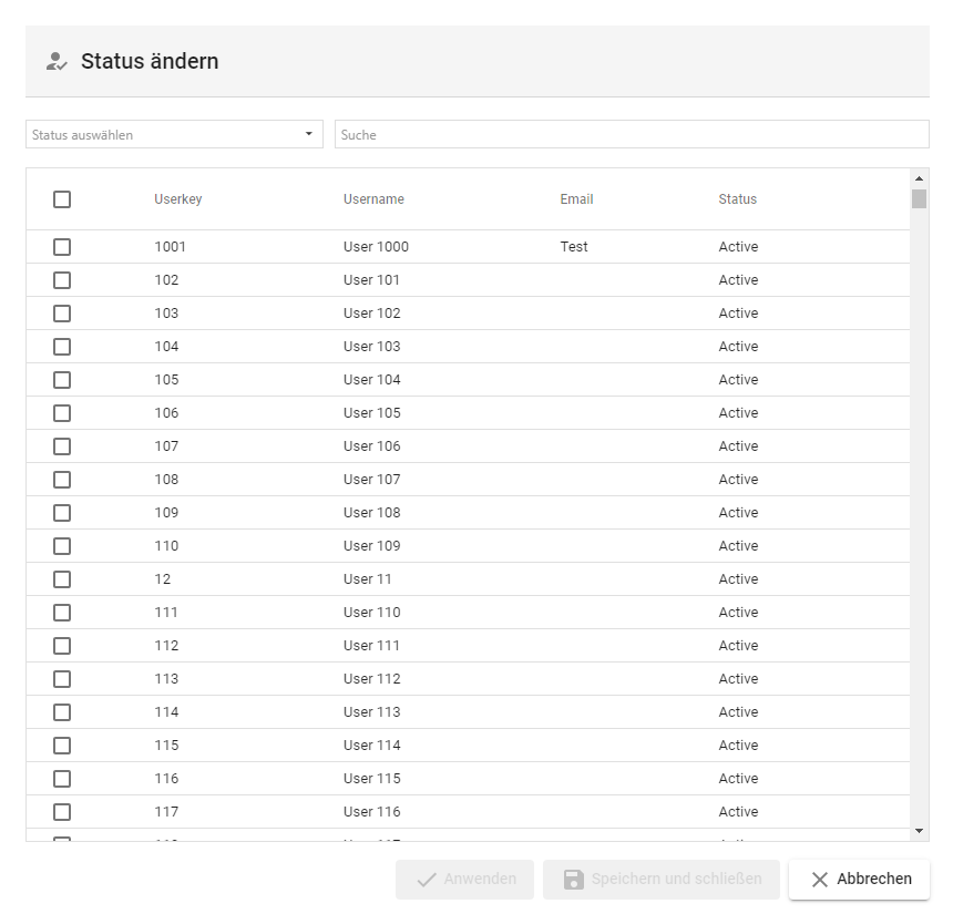 Jeder neu angelegte Benutzer hat den Status “Active”.