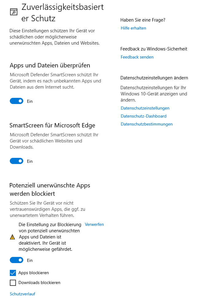 Suchen Sie alternativ nach dem “SmartScreen”: