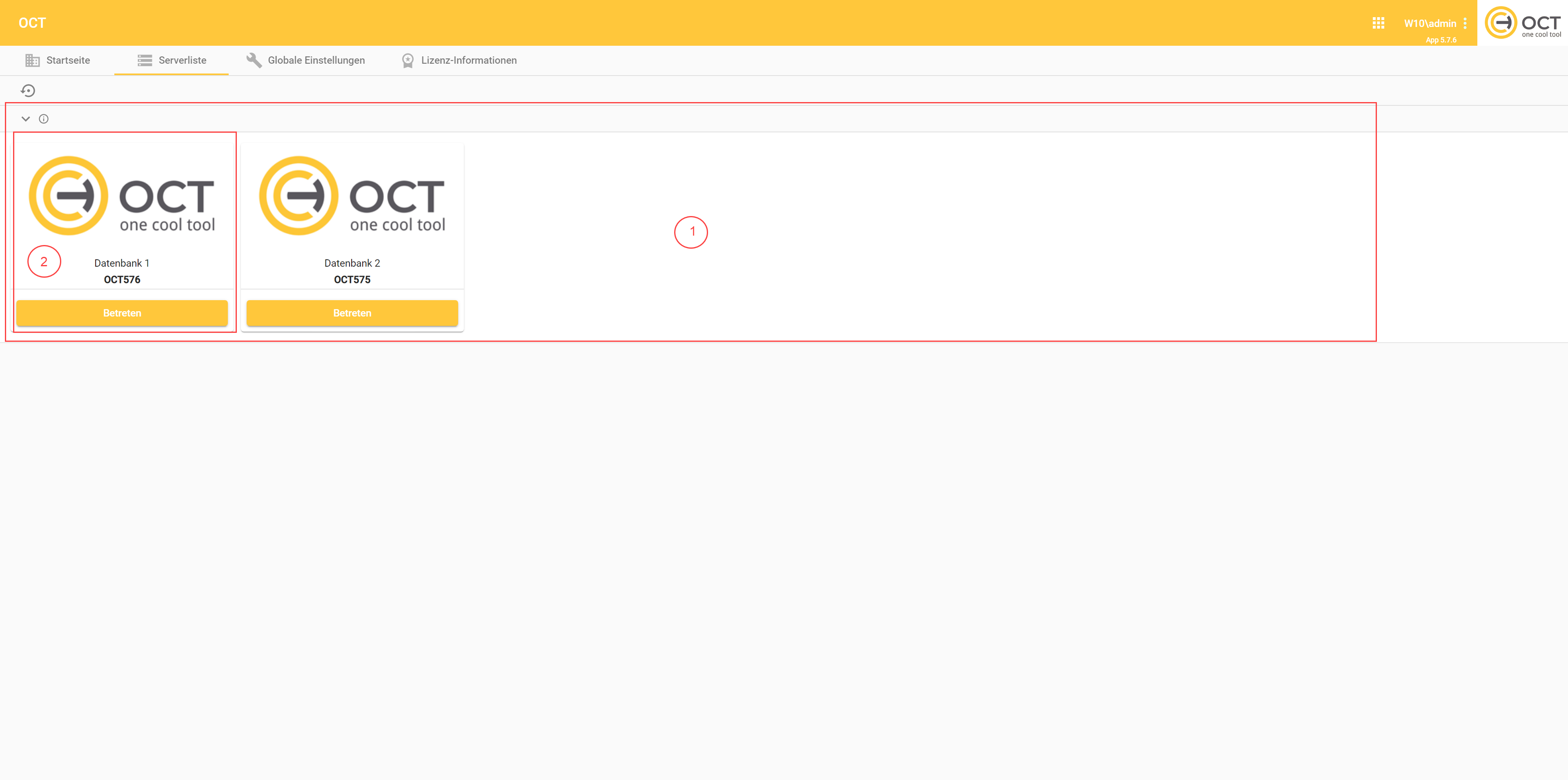 Mit Klick auf die Schaltfläche “Betreten” gelangt man auf die Startseite der jeweiligen Datenbank (siehe Kapitel 2. OCT-Startseite (in Arbeit)).