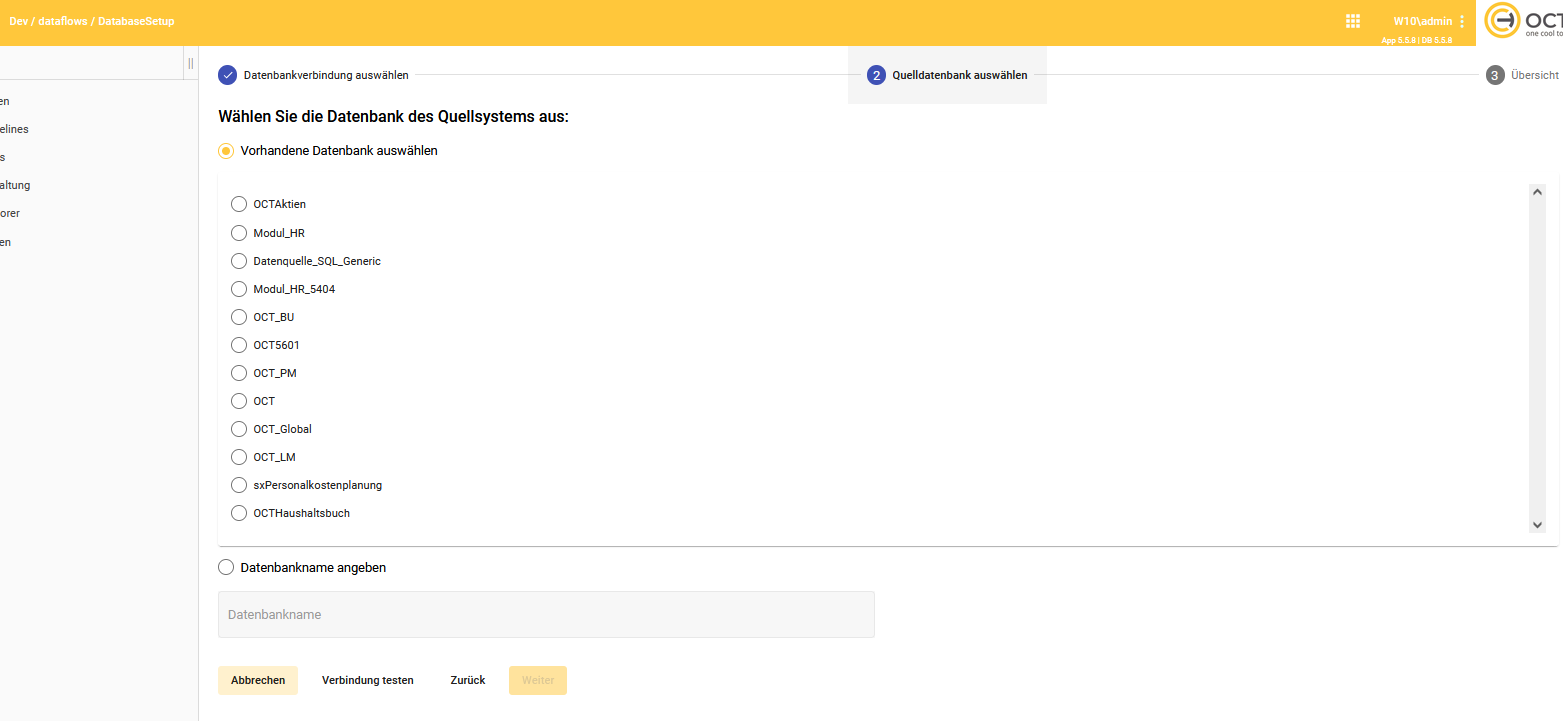 Ermöglicht die Eingabe eines konkreten Datenbanknamen
