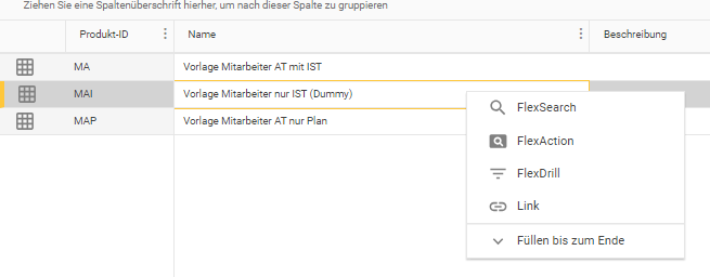 Vollständiges Kontextmenü einer Tabellenzelle im “ProductLine”-Tab