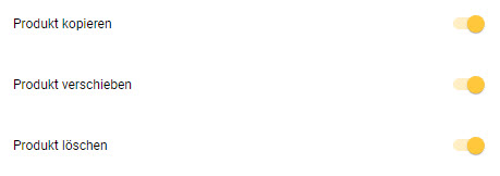 (De-)Aktivierbare Optionen im Produkt-Kontextmenü des “Productline”-Tabs