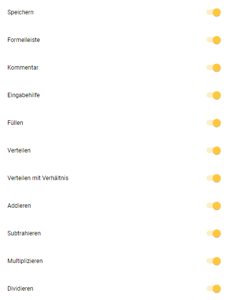Die folgenden Funktionen sind im gesamten Tab (de-)aktivierbar: