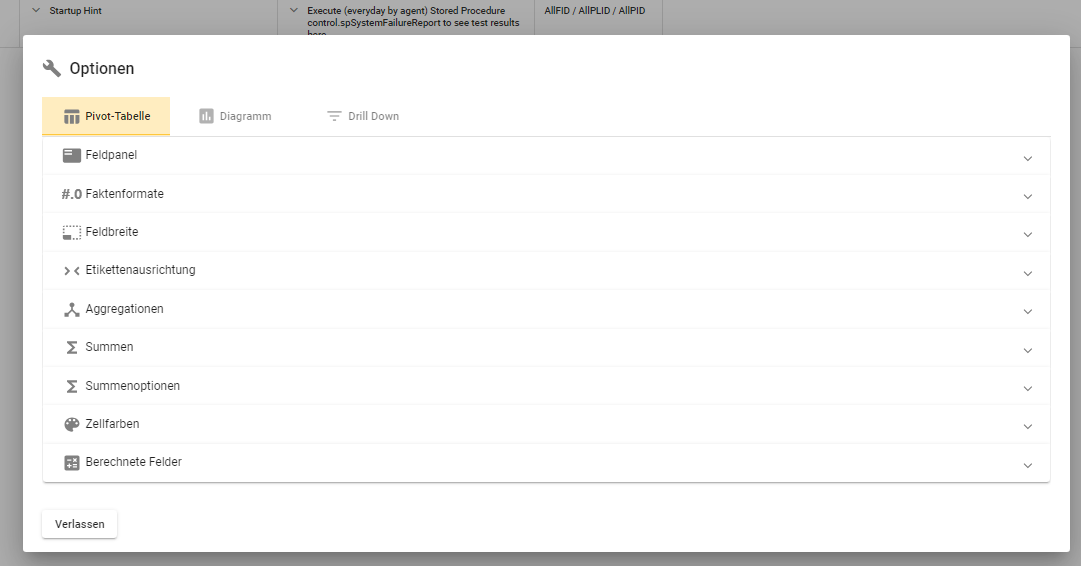 Diese Optionen betreffen den “Optionen-Dialog” des Tab-Typs “Pivot-Tabelle”: