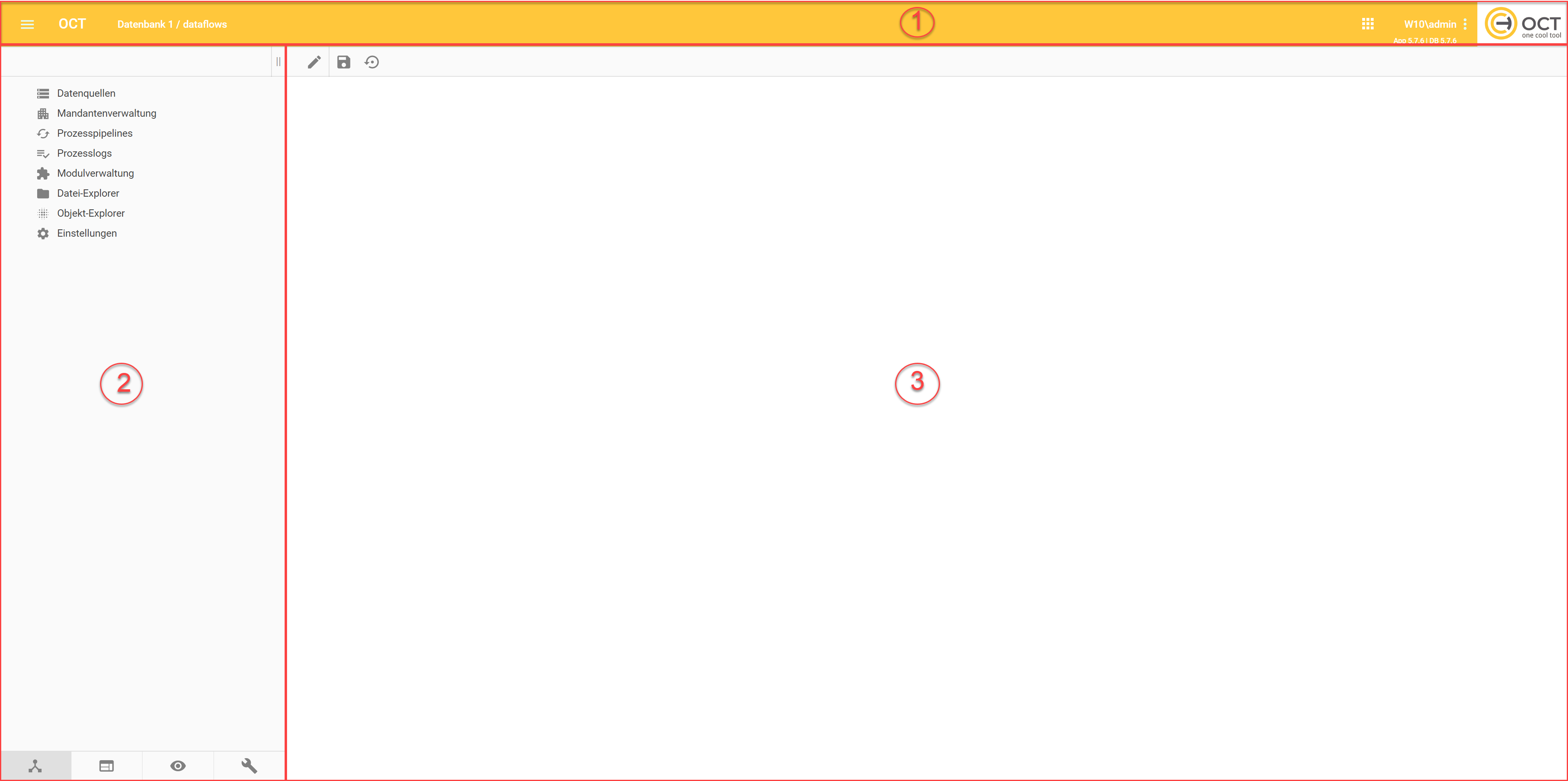 Datenquellen werden definiert um Daten von anderen Speicherorten in die OCT Datenbank zu laden. Pipelines und Steps bilden dann den Datenfluss.