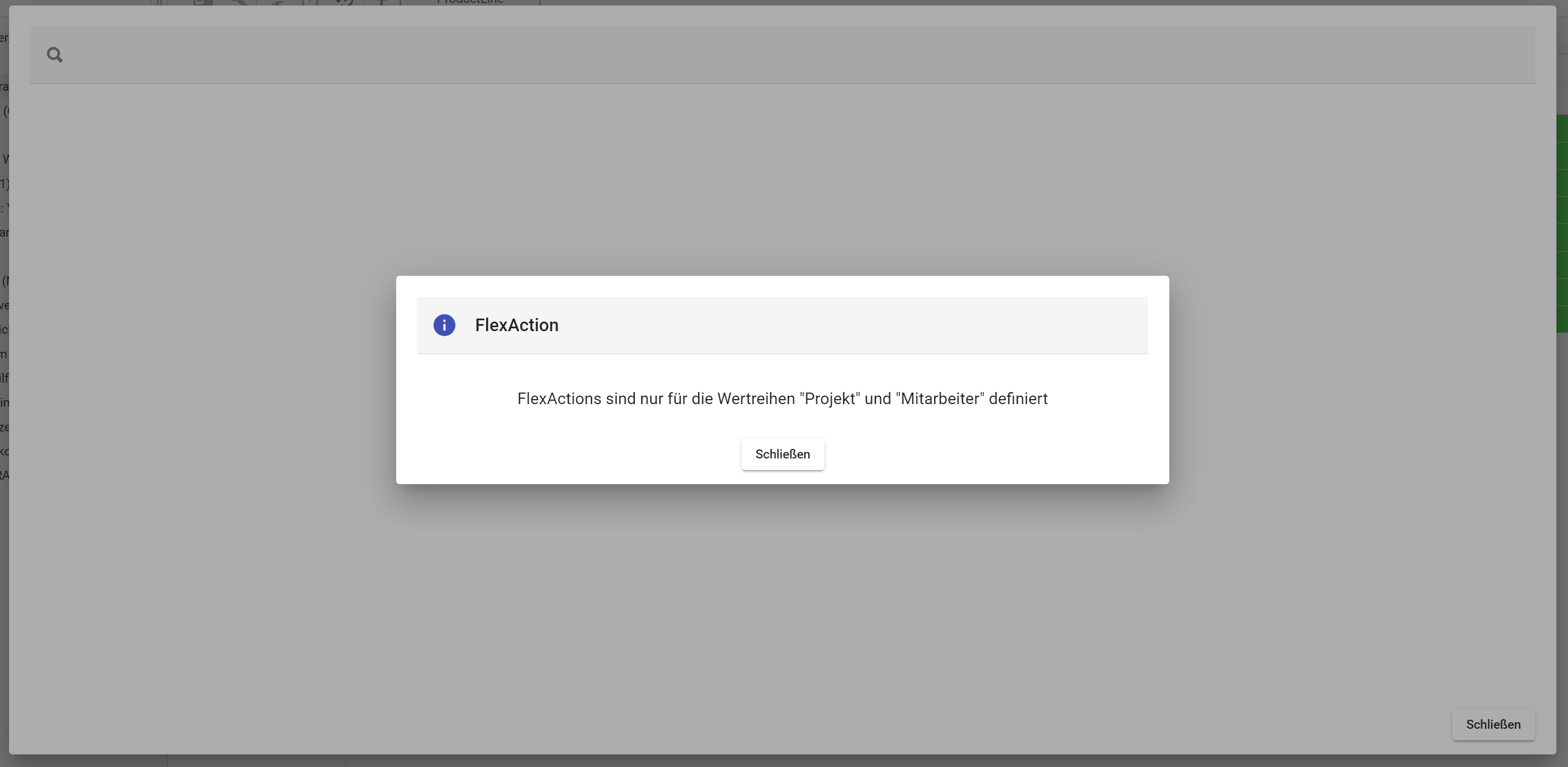 Die FlexAction-Funktion löst im Defaultzustand nur ein Warnfenster aus.