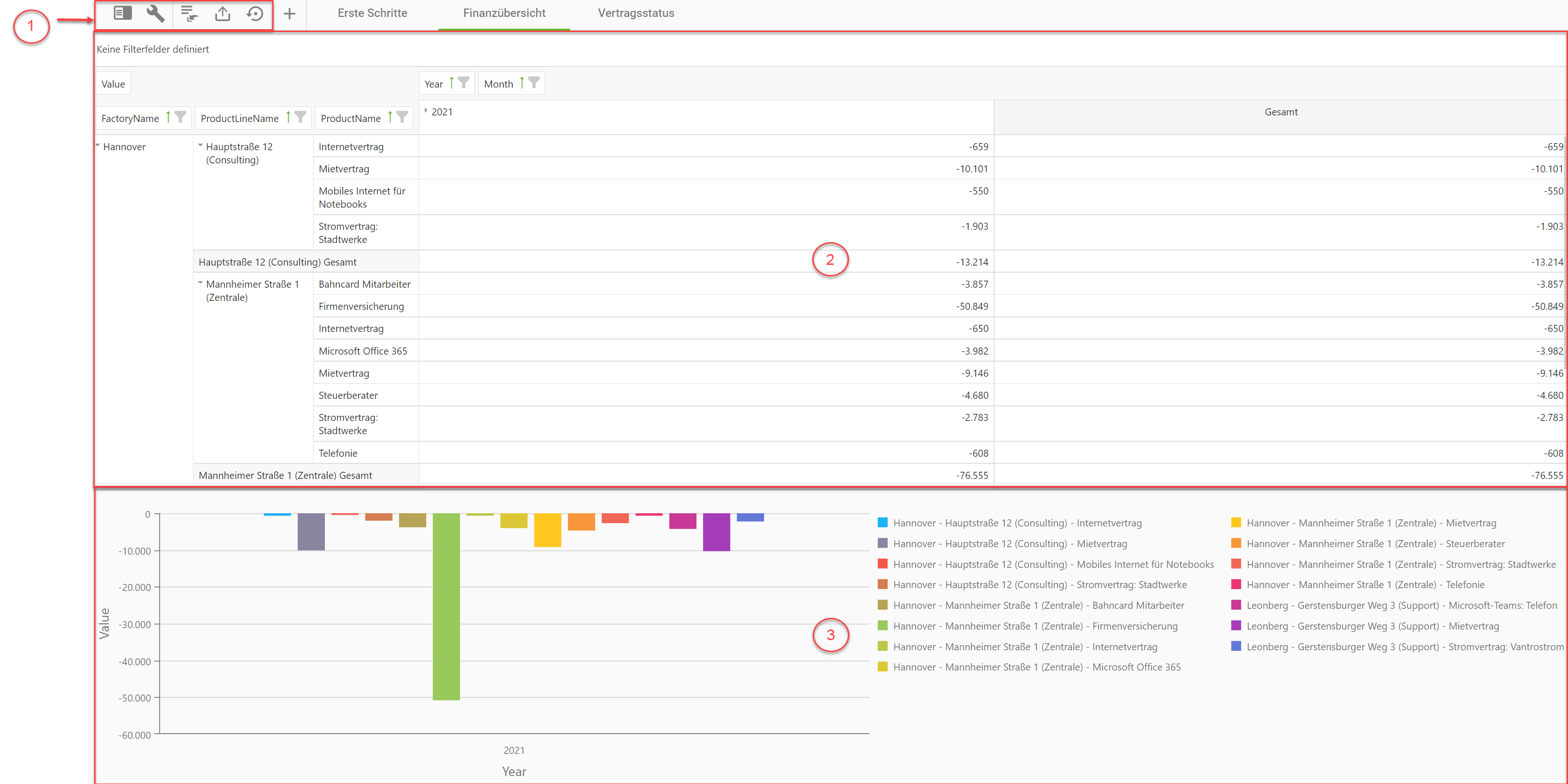 1. Hauptmenüzeile des Tab-Typs “Pivot Grid”