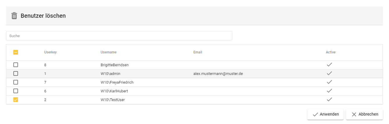 Die Benutzersuche ermöglich das Durchsuchen der Benutzertabelle.
