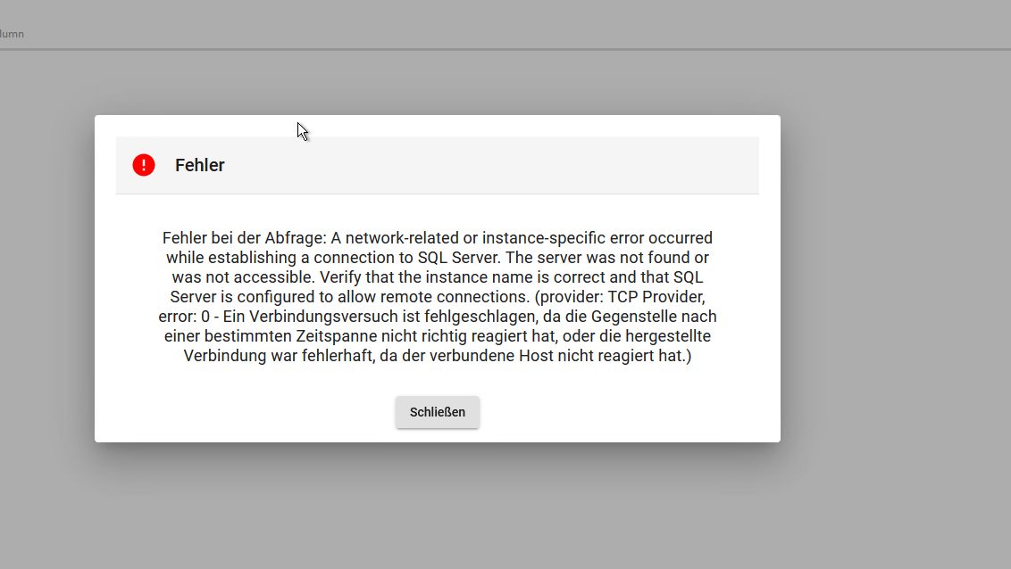 Die IP des Benutzer-/Kundennetzwerkes muss für jede SQL-Datenbank freigegeben sein.