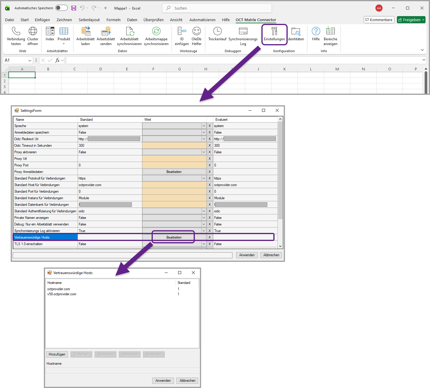Um die vertrauenswürdigen Hosts zu definieren, müssen Sie die Einstellungen des OCT MatrixConnectors öffnen.