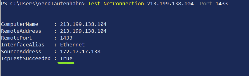 Nach der Bestätigung der Öffnung auf CP Seite, testen Sie die Verbindung mit Powershell Befehl